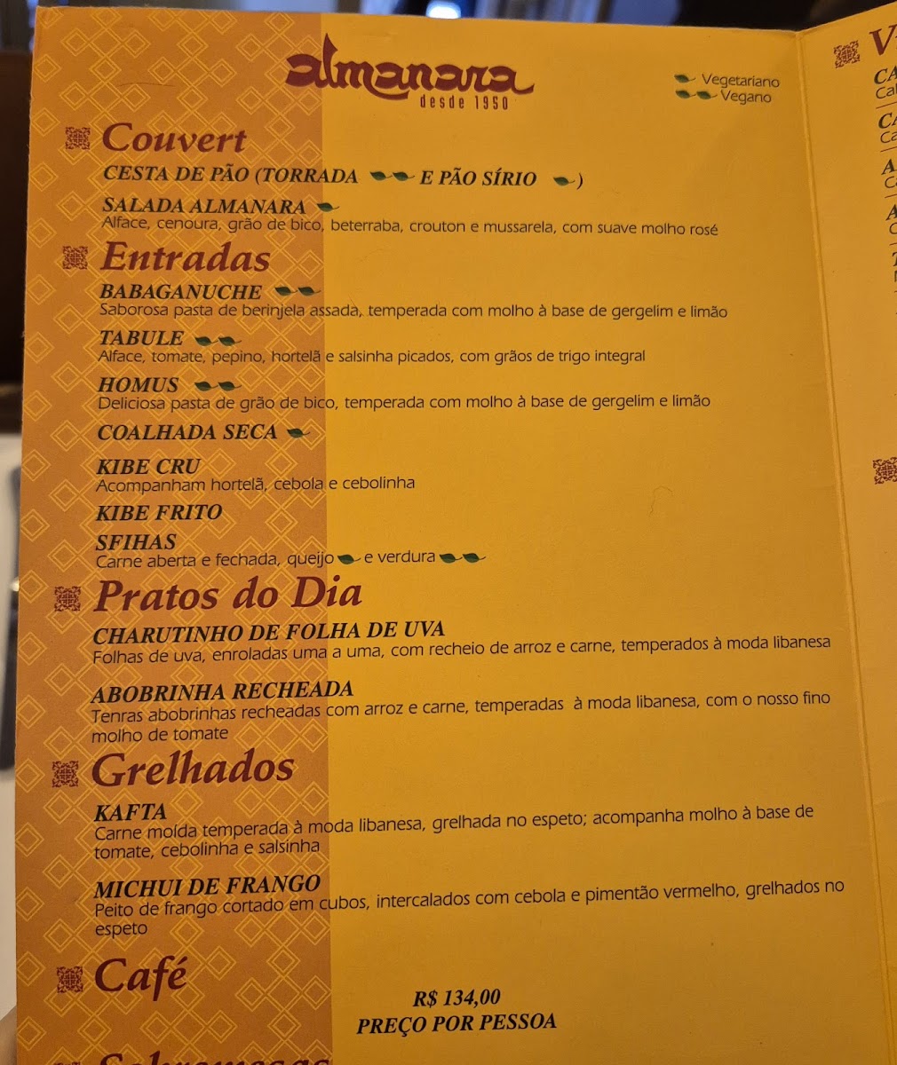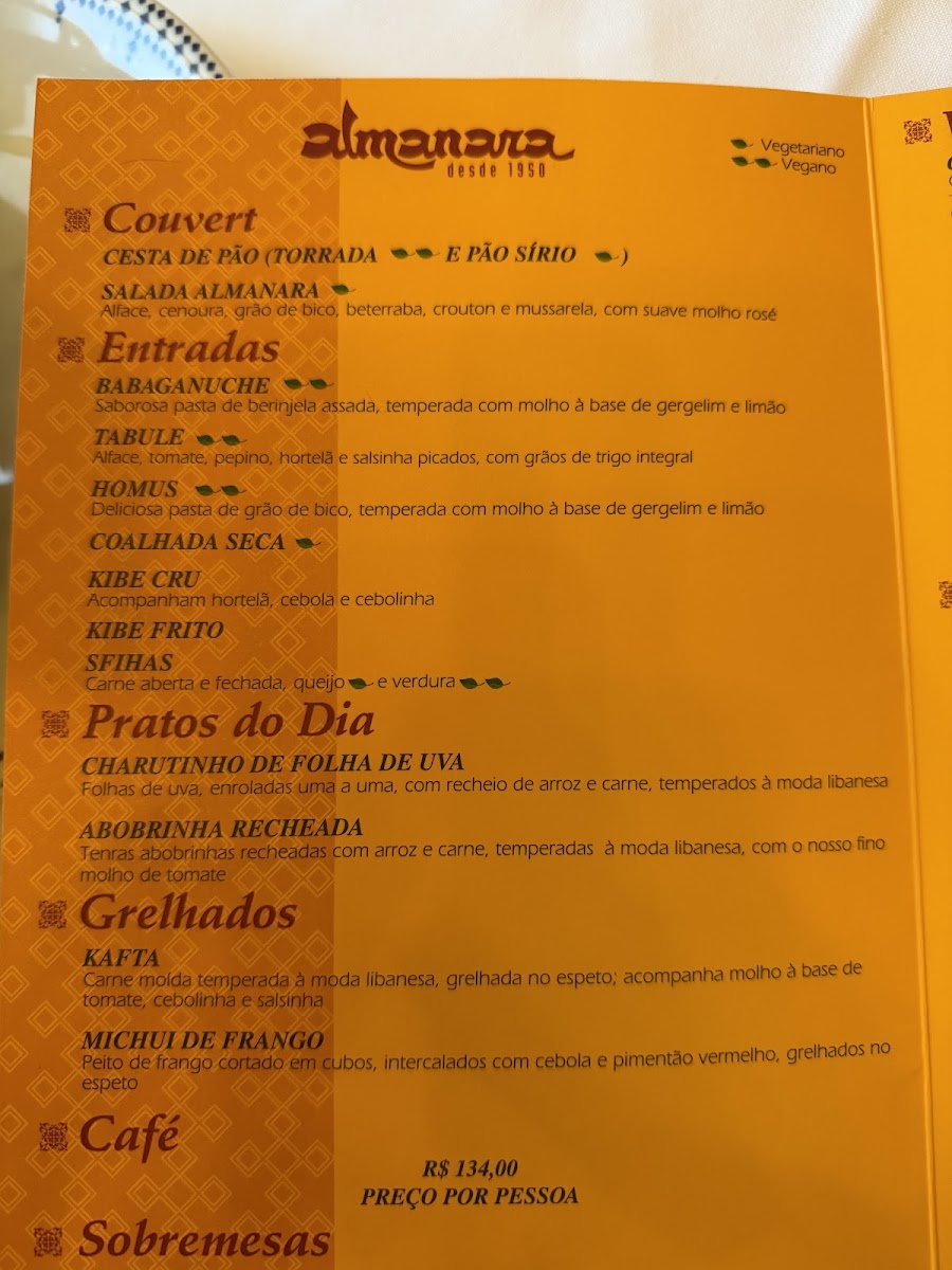 Overall, Almanara Basílio da Gama delivers not just a meal but a remarkable experience, with a menu that caters to diverse tastes and brings the warmth of Middle Eastern hospitality to São Paulo.